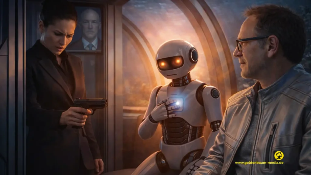 Ihr Blick wanderte vom Brustmodul des Roboters zu Goldies Gesicht.